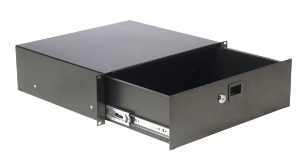 Szuflada z zamkiem do szaf rack 19" 3U, wersja czarna