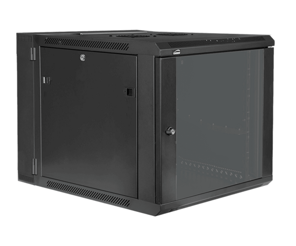 Naścienna szafa rack 19 12U, głębokość 450 mm, wersja czarna