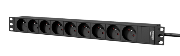 Listwa zasilająca 19” – 9 gniazd typu francuskiego, wersja czarna