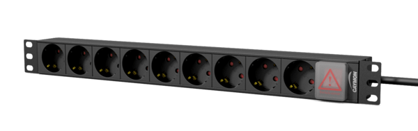 Listwa zasilająca 19" – 9 gniazd typu niemieckiego + włącznik z tyłu, wersja czarna