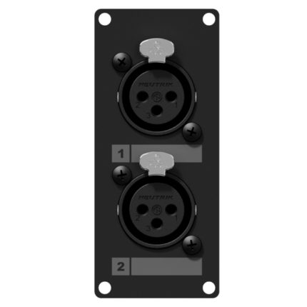 Panel CASY z przejściem: 2 żeńskie złącza XLR – 3-pinowe złącza skręcane, 1-modułowy, wersja czarna