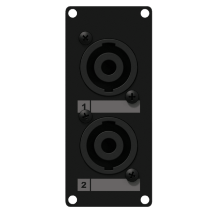 Panel CASY z przejściem: 2x męskie złącze SpeakON – 4-pinowe złącze skręcane, 1-modułowy, wersja czarna