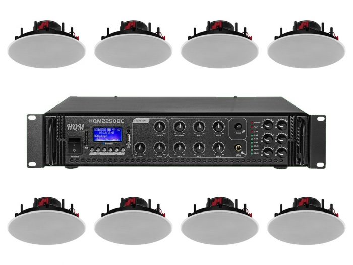 Zestaw przeznaczony jest do nagłośnienia powierzchni nie przekraczającej 100 m². W skład zestawu wchodzi: 6 głośników sufitowych RH SOUND TZ-605T-2 oraz wzmacniacz HQM 2060BC