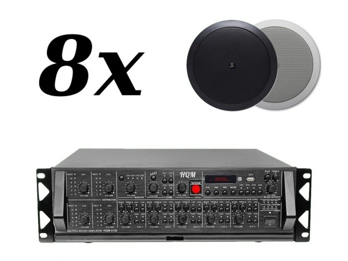 Zestaw przeznaczony jest do nagłośnienia powierzchni nie przekraczającej 150 m². W skład zestawu wchodzi: 8 głośników sufitowych APART CM20T, oraz wzmacniacz HQM 2250BC