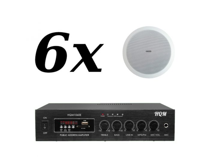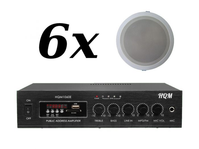 Zestaw przeznaczony jest do nagłośnienia powierzchni nie przekraczającej 100 m². W skład zestawu wchodzi: 6 głośników sufitowych RH SOUND TZ-605T-2 oraz wzmacniacz HQM 1060E