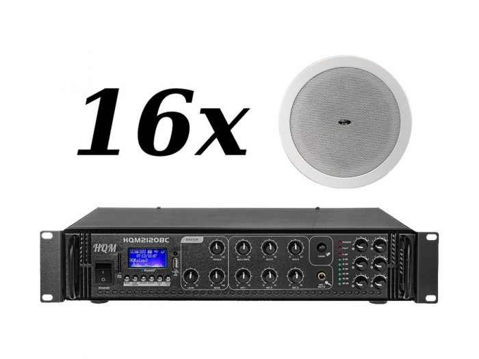 Zestaw przeznaczony jest do nagłośnienia powierzchni nie przekraczającej 300 m². W skład zestawu wchodzi: 16 głośników sufitowych ITC T-105 oraz wzmacniacz HQM 2120BC.