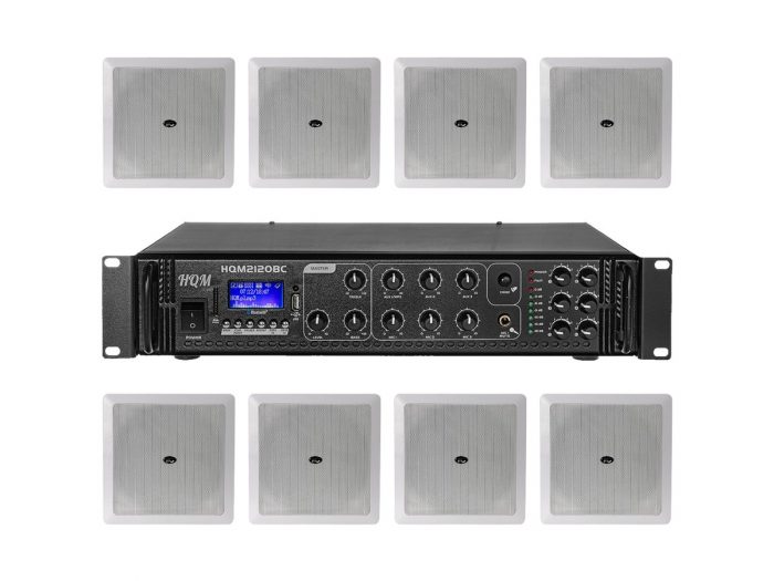Zestaw przeznaczony jest do nagłośnienia powierzchni nie przekraczającej 150 m². W skład zestawu wchodzi: 8 głośników sufitowych ITC T-208A oraz wzmacniacz HQM 2120BC.