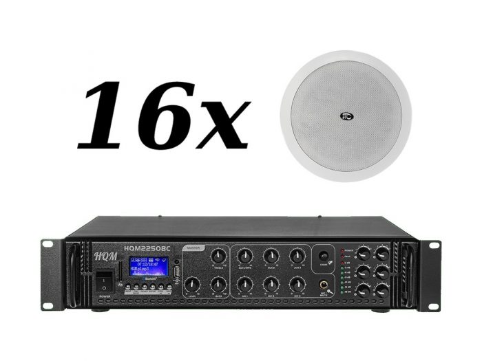 Zestaw przeznaczony jest do nagłośnienia powierzchni nie przekraczającej 300 m². W skład zestawu wchodzi: 16 głośników sufitowych ITC T-206A oraz wzmacniacz HQM 2250BC