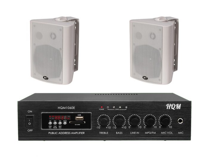 Zestaw przeznaczony jest do nagłośnienia powierzchni nieprzekraczającej 60 m². W skład zestawu wchodzą: 4 głośniki naścienne ITC T-776 oraz wzmacniacz HQM 2250BC