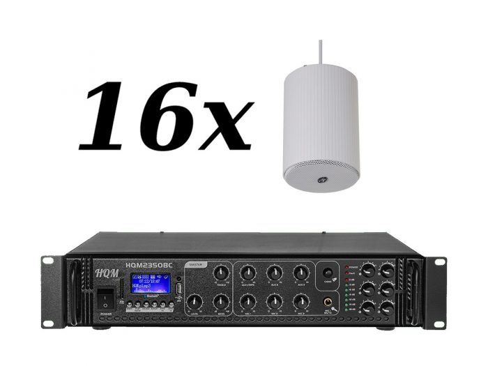 Zestaw przeznaczony jest do nagłośnienia powierzchni nie przekraczającej 300 m². W skład zestawu wchodzi: 16 jednodrożnych głośników sufitowych HQM SOZ616 oraz wzmacniacz HQM 2180BC