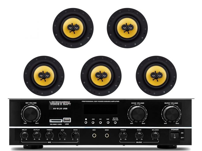 Zestaw przeznaczony jest do nagłośnienia powierzchni nie przekraczającej 60 m². W skład zestawu wchodzą: 5 głośników sufitowych Voice Kraft QC 50T, oraz wzmacniacz AV 818 USB z dwoma mikrofonami bezprzewodowymi