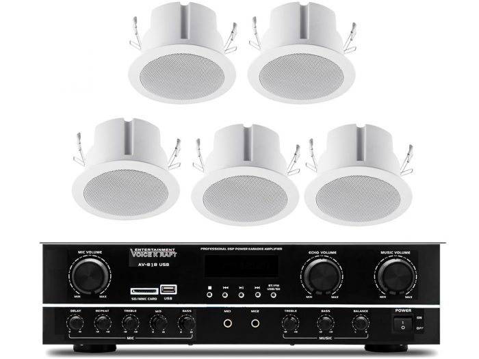 Zestaw przeznaczony jest do nagłośnienia powierzchni nie przekraczającej 60 m². W skład zestawu wchodzą: 5 głośników sufitowych Voice Kraft QC 40T, oraz wzmacniacz AV 818 USB z dwoma mikrofonami bezprzewodowymi