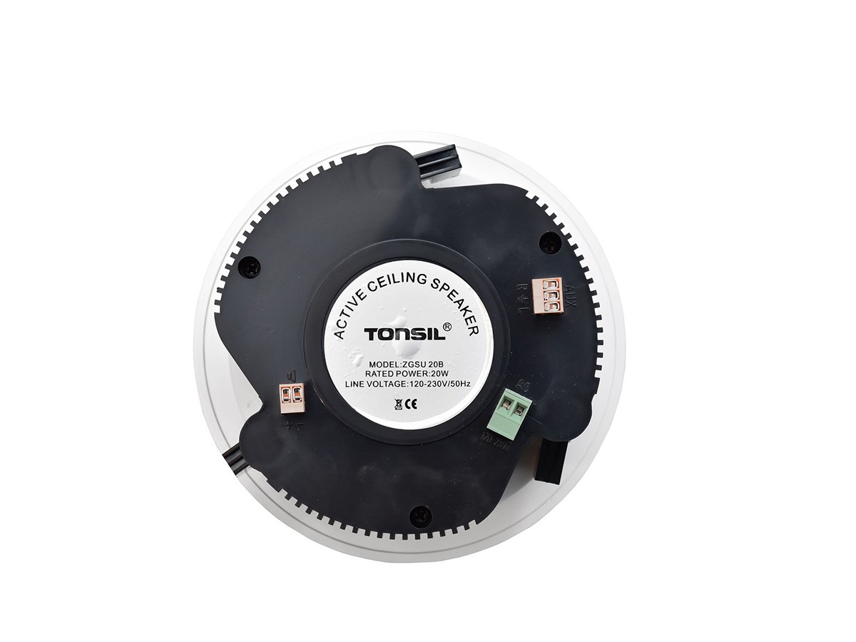 Dwudrożny, aktywny głośnik sufitowy ZGSU 20B. Głośnik wyposażony jest we wzmacniacz, wejście liniowe AUX i łącze Bluetooth do odtwarzania muzyki z urządzeń mobilnych. Głośnik ZGSU 20B wymaga zasilania sieciowego 230V. Możliwość montażu w sufitach podwieszanych i ścianach. Głośniki przeznaczone do nagłaśniania obiektów takich jak:domy, hipermarkety, sklepy, banki, szpitale, restauracje itp. Dla poszerzenia zakresu niskich tonów polecamy zastosowanie subwoofera.Głośnik 2-drożny bardzo wysokiej jakości, maskownica mocowana na magnesie do głośnika.