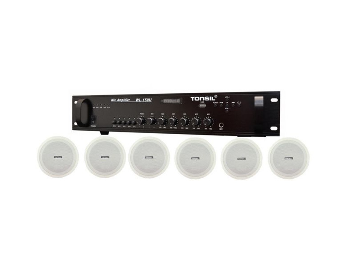 Zestaw nagłaśniający składający się z 5-cio strefowego wzmacniacza miksującego WL-180U wyposażonego w odtwarzacz MP3 USB, dzięki któremu można odtwarzać muzykę z pendrive’a oraz 6 głośników sufitowych ZGSU 25T. Zestaw przeznaczony do nagłośnienia: sklepów, restauracji, barów, przychodni lekarskich itp.