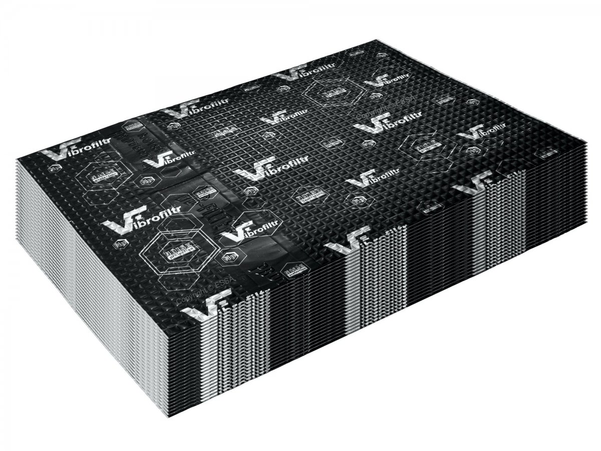 Mata Vibrofiltr PRO 1.5 jest najlżejszym i najtańszym materiałem tłumiącym wibracje z serii NP (Noise Protection). Jednak w przeciwieństwie do nawet grubszych materiałów innych producentów, jest wyjątkowo skuteczny dzięki wysokiemu współczynnikowi stratności mechanicznej (MLF=0,25) osiąganemu już przy grubości całkowitej wynoszącej 1,5 mm. Wszystko to dzięki unikalnej kompozycji wysokiej jakości kauczuku butylowego, polimerów i aluminiowej folii o grubości 100 mikrometrów, które zostały użyte do produkcji tej maty.