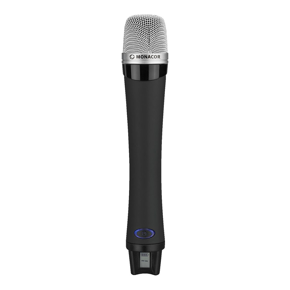 Profesjonalny mikrofon doręczny niemieckiej marki Monacor współpracujący z 16-kanałowymi odbiornikami Monacor ATS-16R.