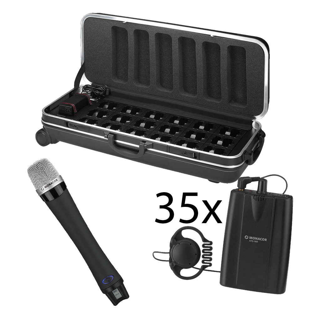 Monacor ATS-16 to rozbudowany system audioguide i niezawodny w każdej sytuacji. Łatwa obsługa, doskonała jakość dźwięku. Nowoczesny, praktyczny zestaw z szeregiem przydatnych funkcji. Teraz z nadajnikiem w formie mikrofonu doręcznego.